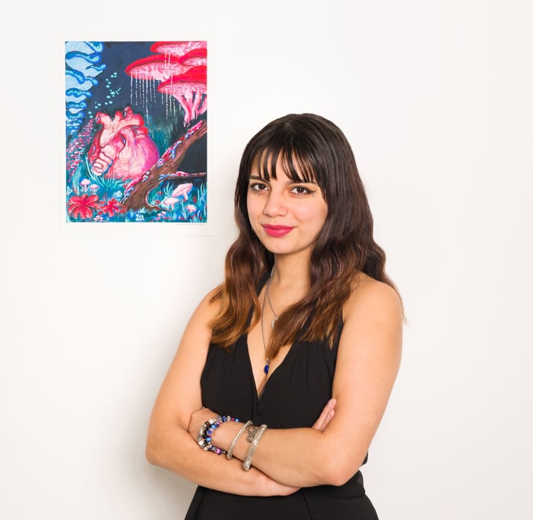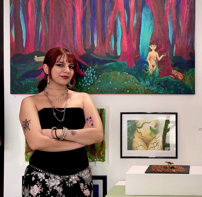 Colomba’s art explores compassion and trauma through natural elements such as animals, plants, and fungi. Using the natural world as a driving force, Colomba aims to inspire empathy and a sensitivity with not only the human condition, but all living beings within our planet.
