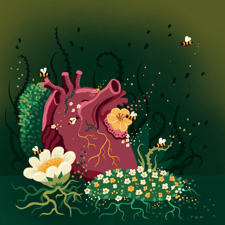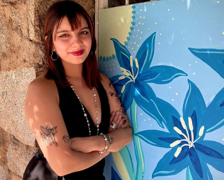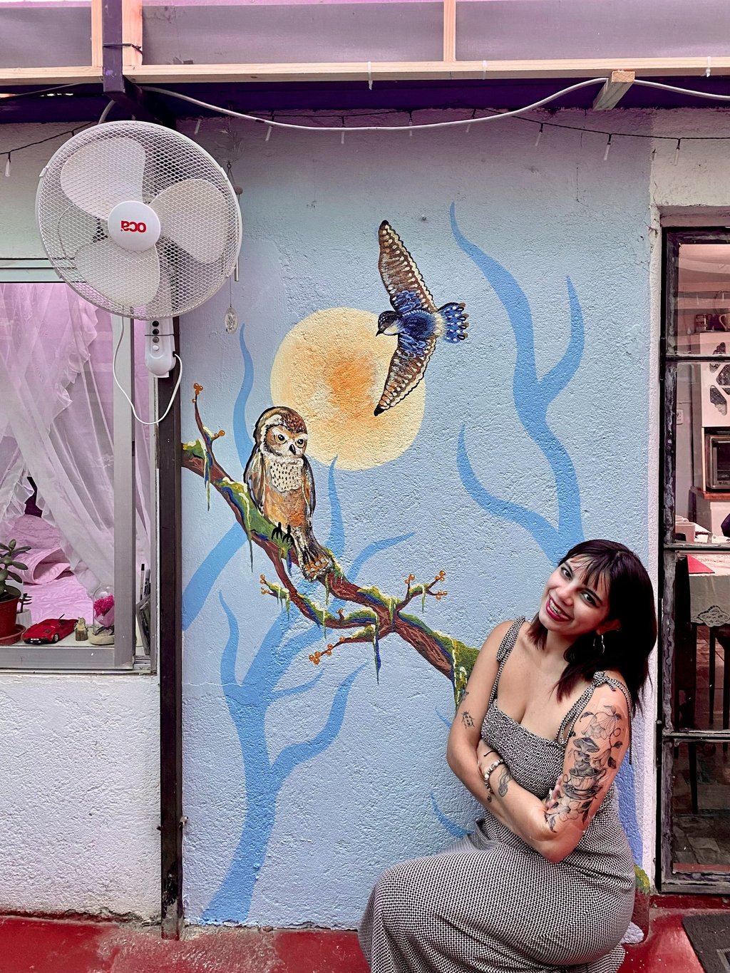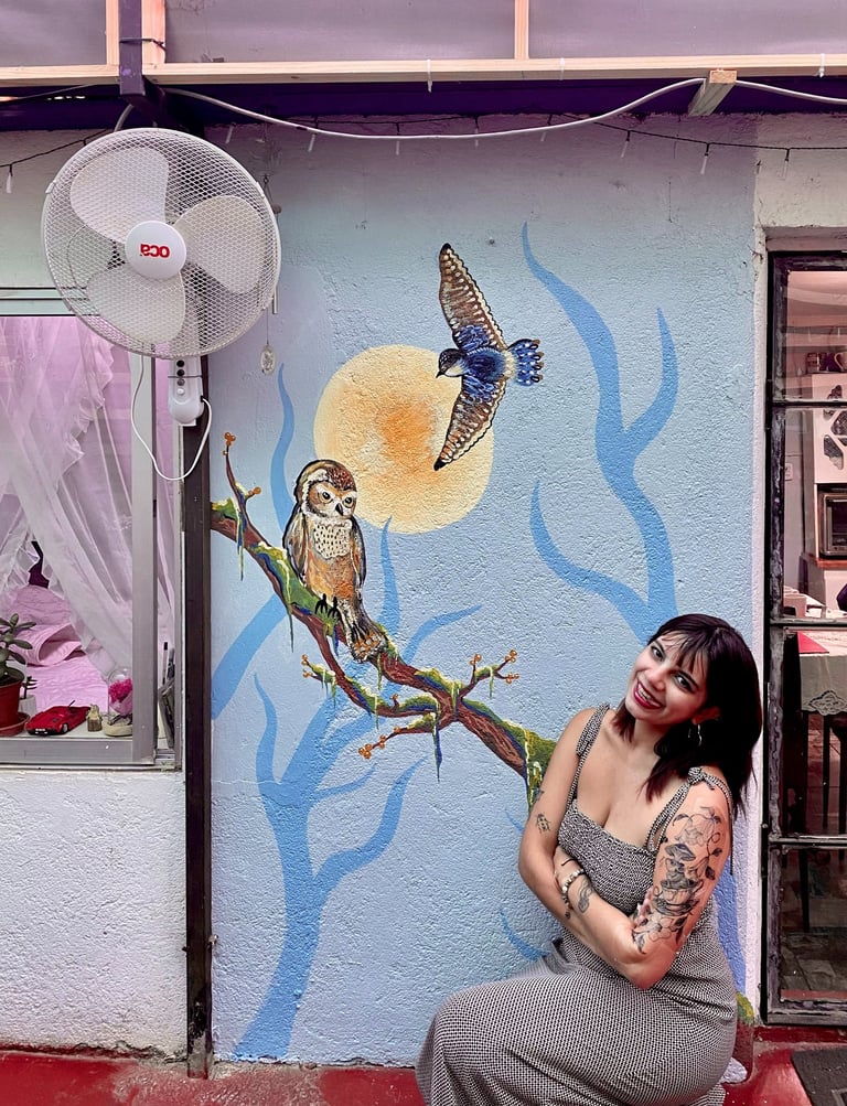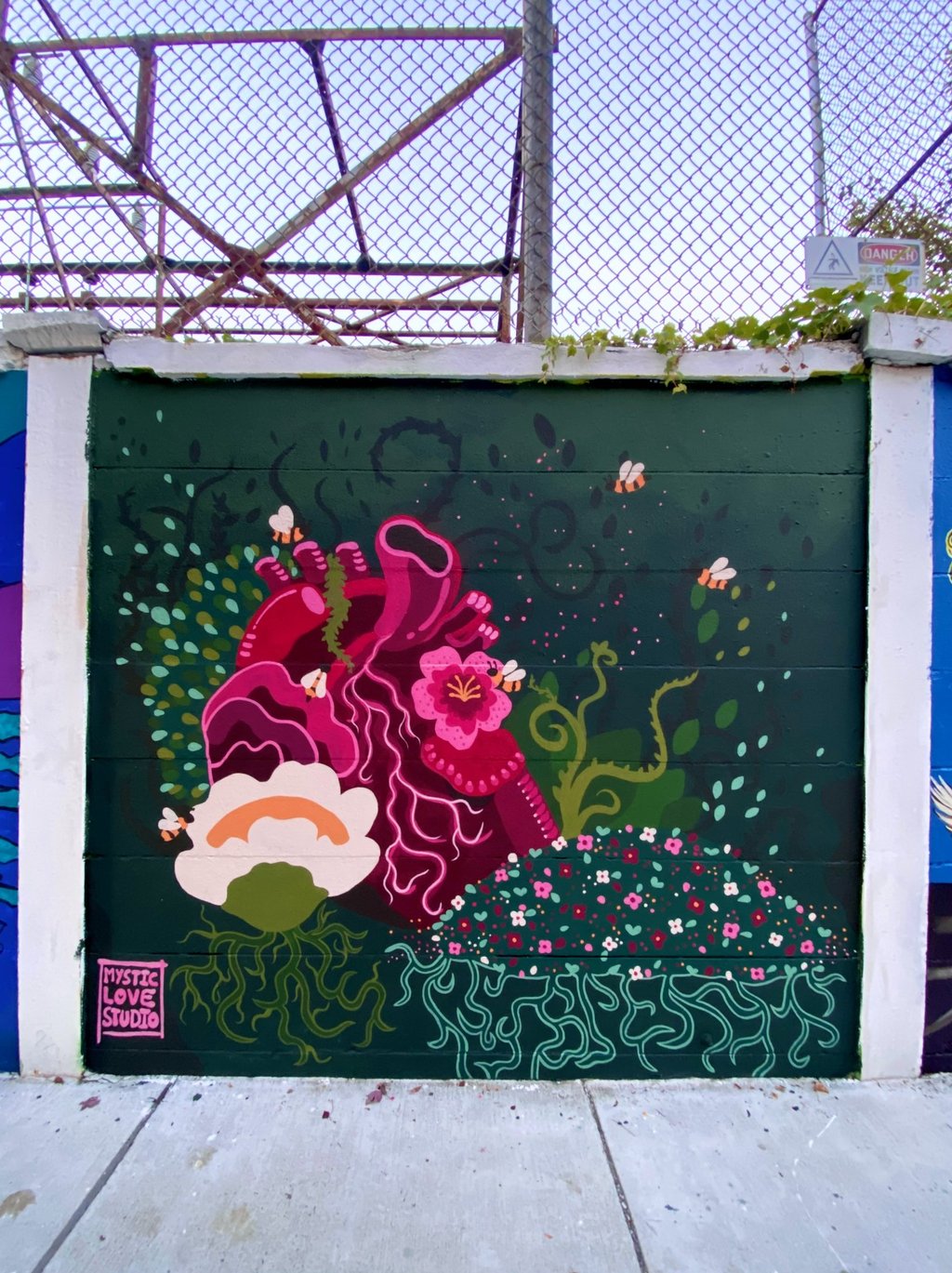 Pollination is an 8x8' mural created as part of the Punto Urban Art Museum Raices/ Roots mural project. The project consists of 10 walls painted by various artists with Roots as a theme. Pollination is about cultivating roots from each other and blooming together. Empathy and compassion allows us to do this and continue expanding our roots as a collective that wants each other to succeed.