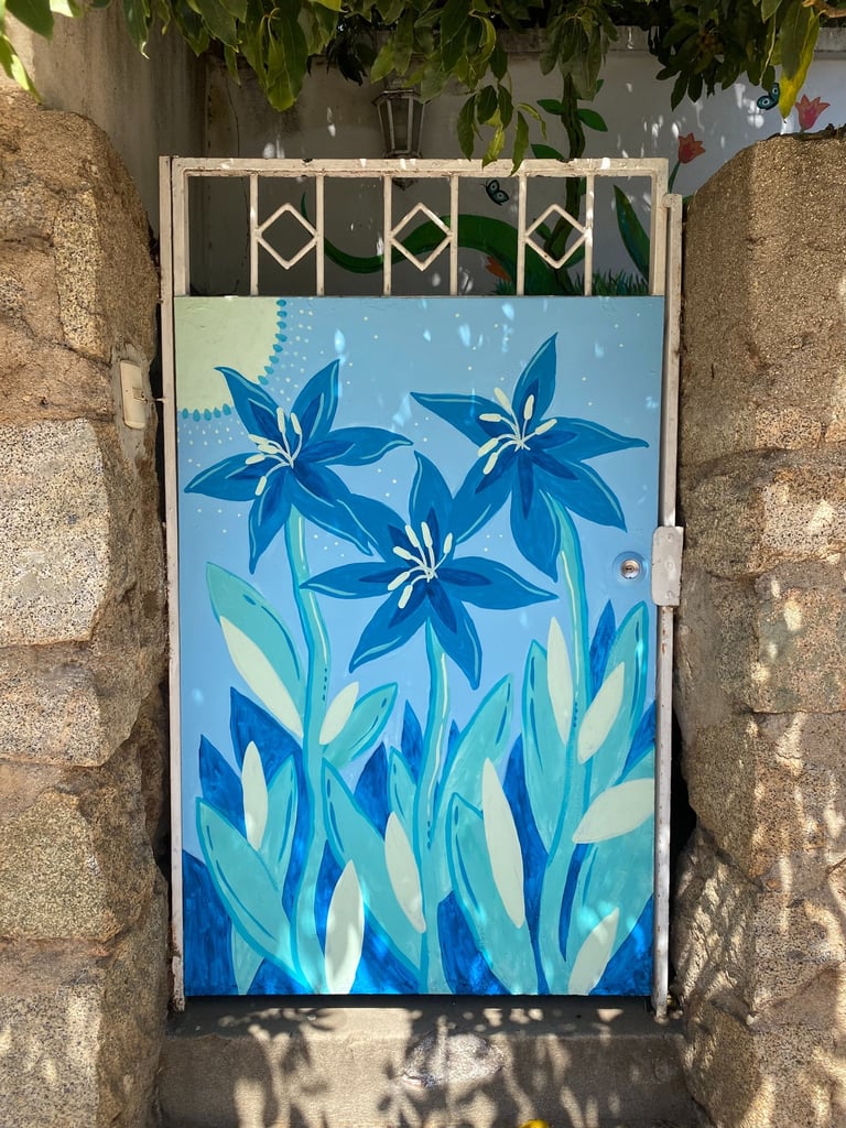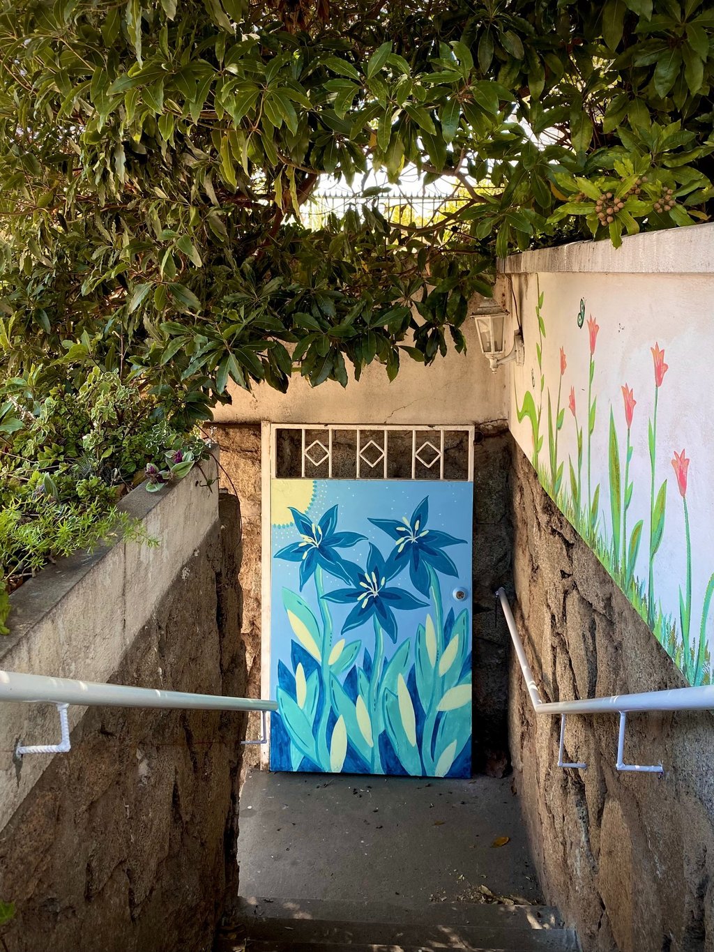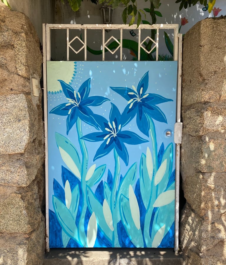 This door mural is located right outside the Viña del Mar city center. It is about 3x4.5' on a private door. The owners requested a mural depicting a flower local to the central regions of Chile.