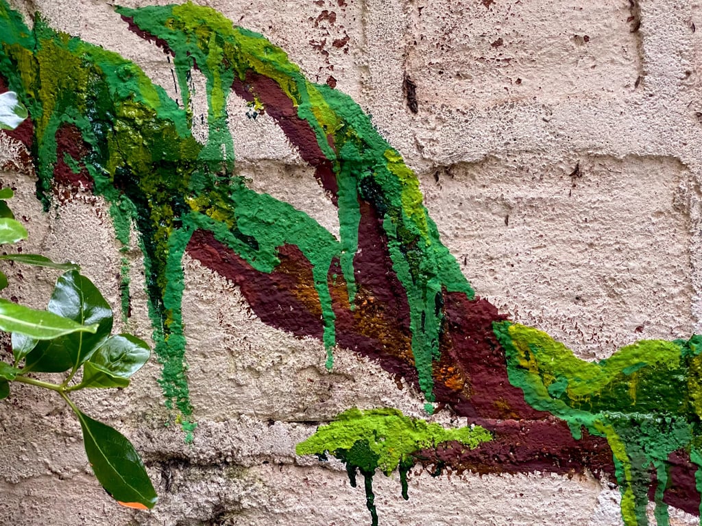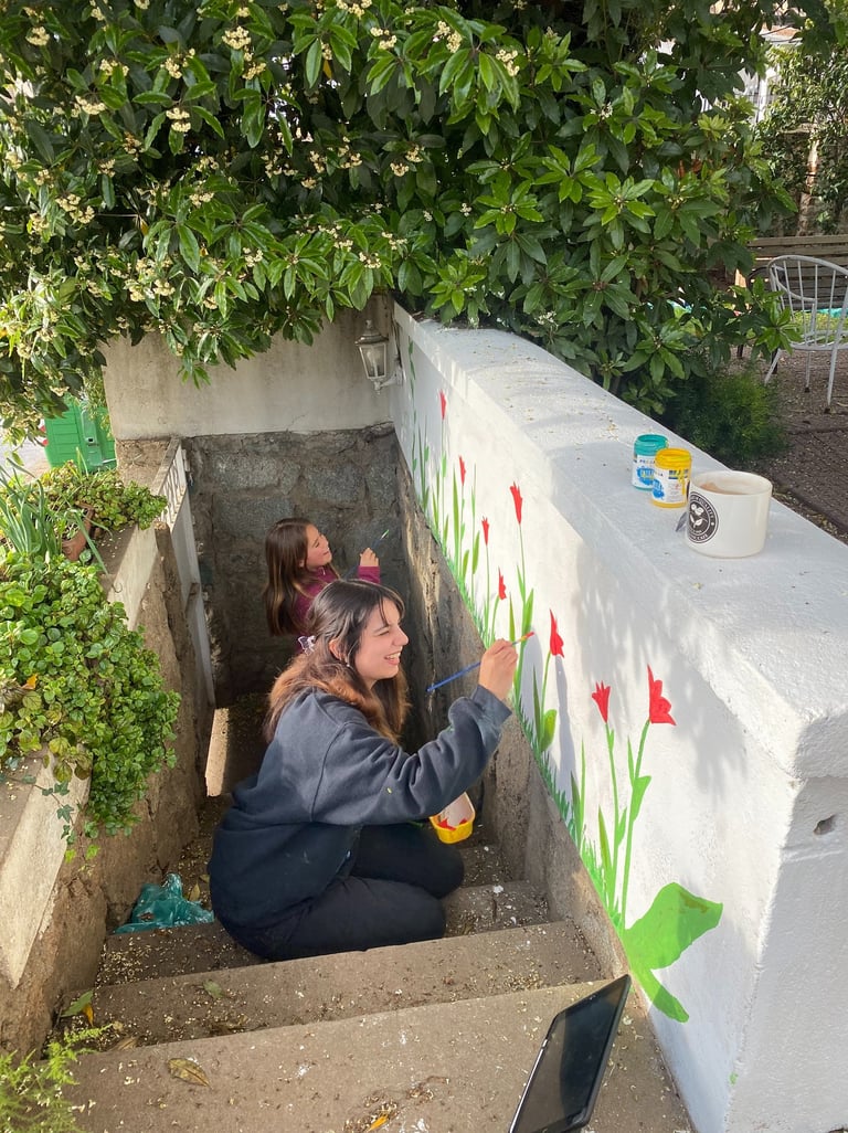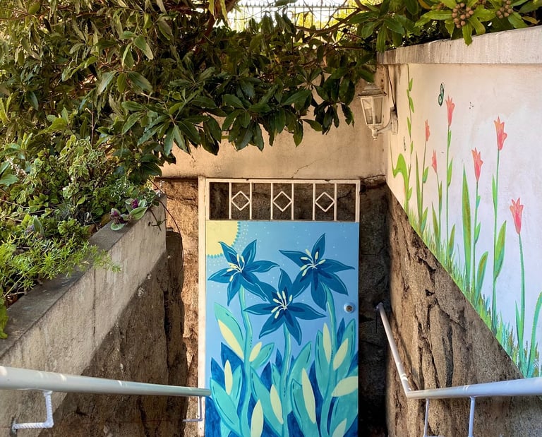 Painted and designed outdoor wall mural as an entrance piece to the garden of the house.