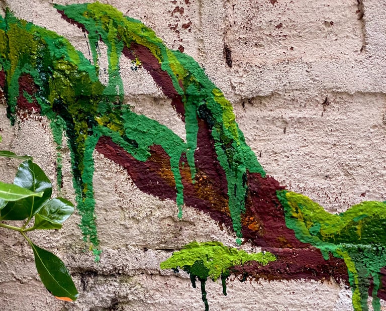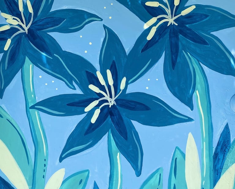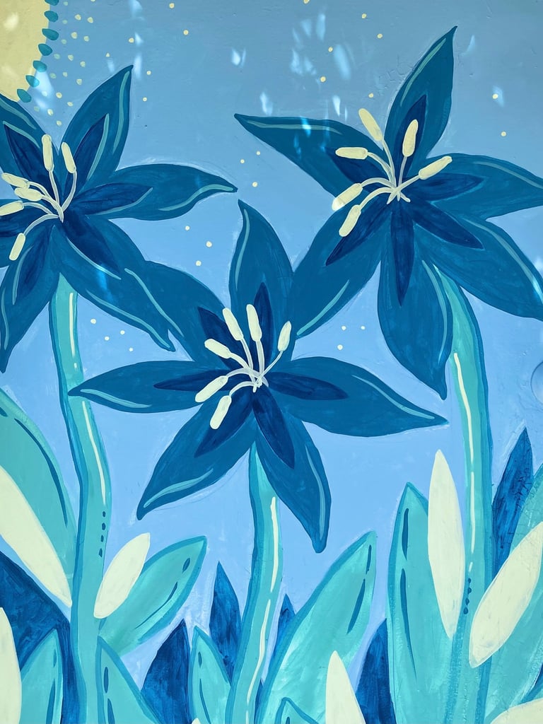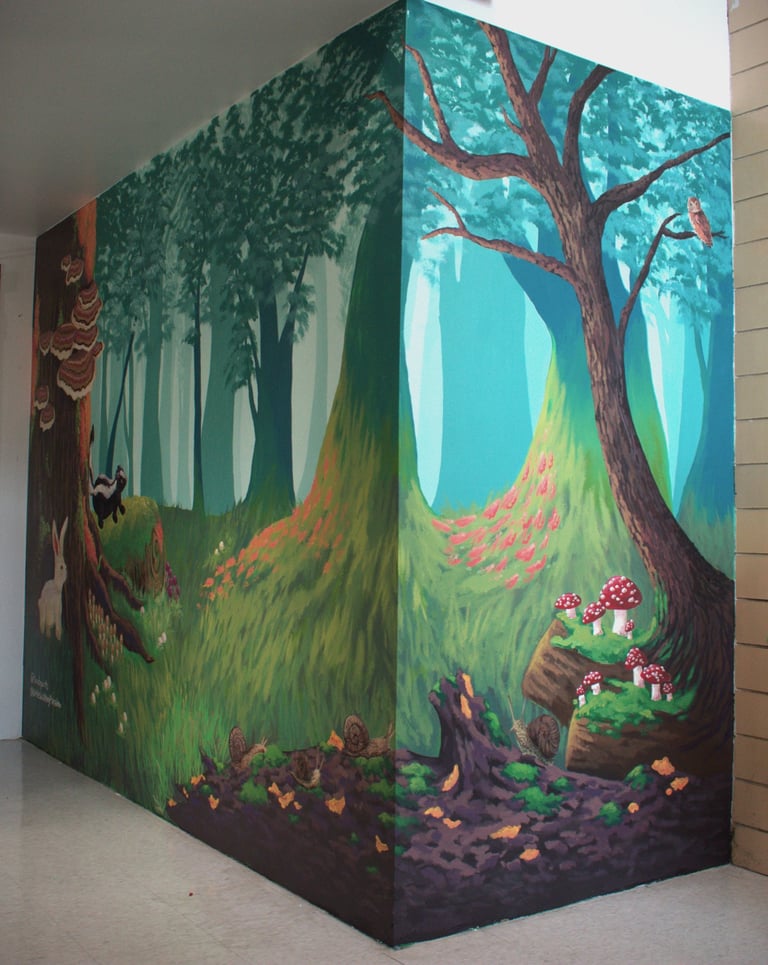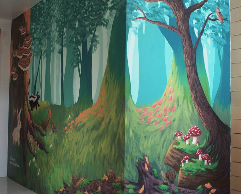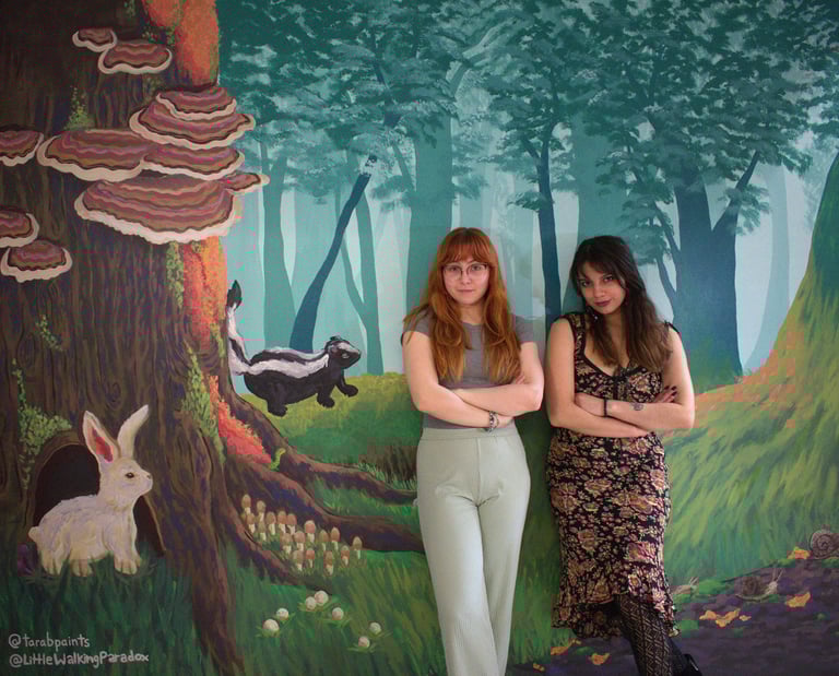 This was a mural collaboration made by Colomba Klenner and New-England based artist Tara Bilotta. The initial idea to create a magical forest full of fungi was brought to life by both artists in contrasting sketches. The sketches were merged on Photoshop to create something that was equally collaborative.